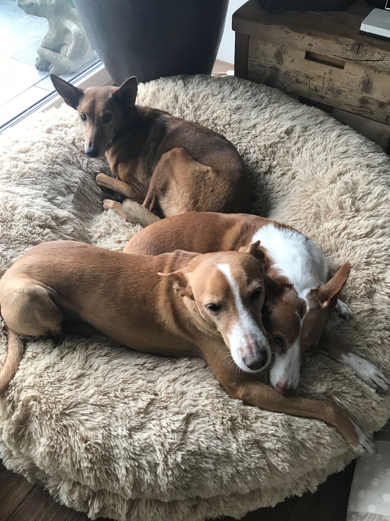 Da unsere Familie schon aus 2 Menschen plus einer Viszla- und eine Podenca Hündin bestand, sollte PADMA als Pflegehund zu uns kommen und bei uns wohnen bis sie ihre Familie findet. Bei unserer Podenca hatten wir ganz klar als Pflegestelle versagt- das sollte nicht nochmals passieren.