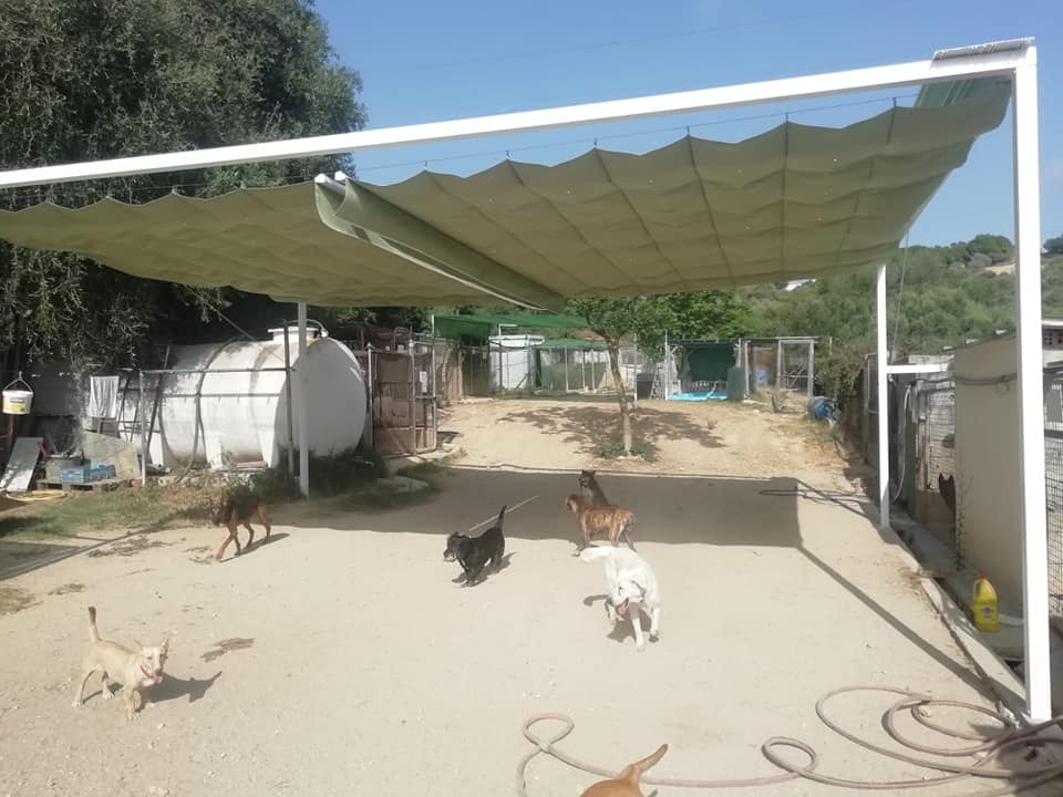 Das Melampo-Team ist dieser Firma von La Linea, TOLDOS SANTIAGO, für die großartige Arbeit, die in unseren Einrichtungen geleistet wurde, enorm dankbar. Jetzt können unsere Hunde an den heißesten Tagen mehr Schatten genießen.