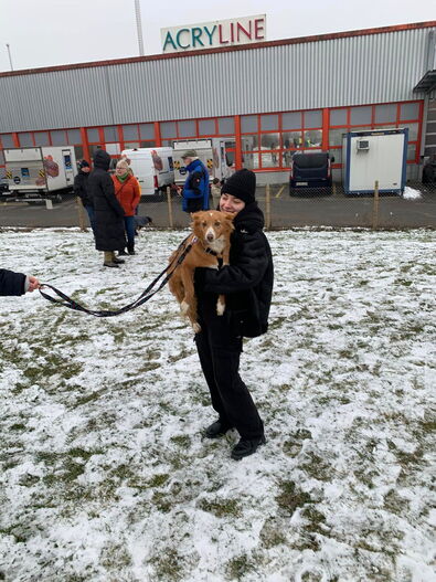 Aiaiai, kalt war es heute. Um nicht zu sagen sehr kalt. Aber die Kälte tat der guten Laune von Adoptanden, Pflegestellen und Helfern keinen Abbruch. Denn da kamen sie ja angerauscht, unsere (nun ehemaligen) Schützlinge. Trotz gewissen Widrigkeiten in Strassenverkehr pünktlich ( grosses Dankeschön an Dogs on Road!).