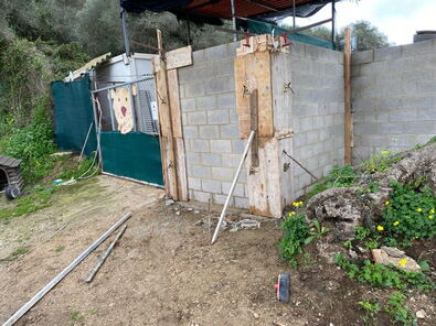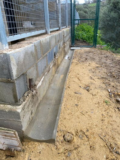 Dank Spendengeldern aus der Schweiz konnten wir beim Eingang zum Camp eine 2m hohe Mauer errichten lassen, nachdem das Gelände zur Befestigung aufgeschüttet werden musste, um die Kennels vor dem Abrutschen zu schützen.